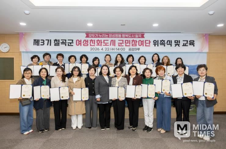 미담타임스 김준완 기자 | 칠곡군은 지난 22일 군청 공감마루에서 제3기 여성친화도시 군민참여단 25명을 위촉식을 가졌다.