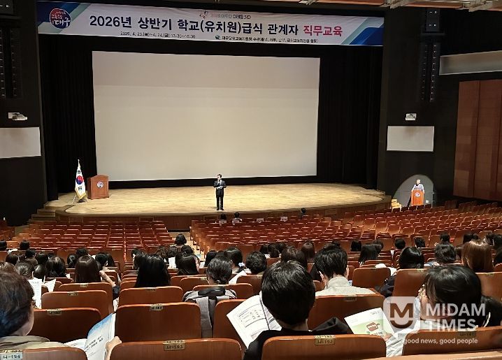 미담타임스 전해찬 기자 | 대구달성교육지원청은 4월 23일부터 24일까지 이틀간 대구학생문화센터 대공연장에서 대구지역 전체 영양(교)사·조리사·학교급식소위원(학부모) 등 1,902명을 대상으로 ‘학교급식 관계자 직무연수’를 개최한다.