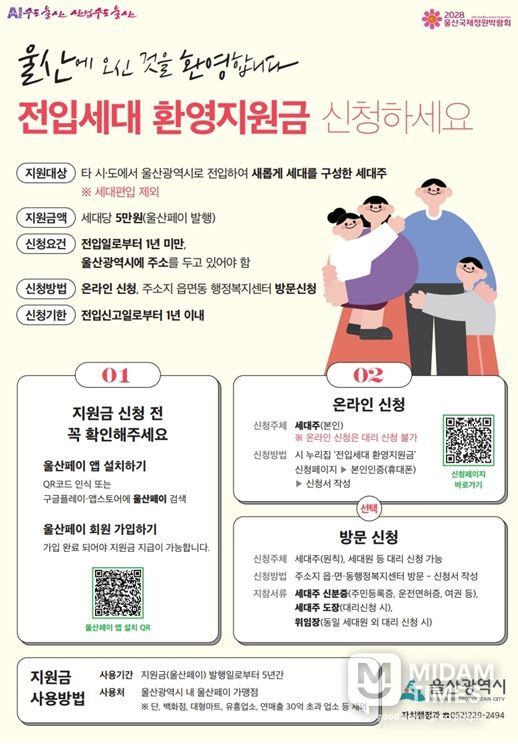 미담타임스 김준완 기자 | 울산시가 온라인을 통한 전입세대 환영 지원금 신청을 본격 개시한다.