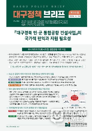 대구광역시는 대구정책연구원과 함께 ‘대구경북 민·군 통합공항 건설에 따른 국가적 편익과 지원 필요성’을 체계적으로 분석한 정책브리프를 4월 24일 발간했다.