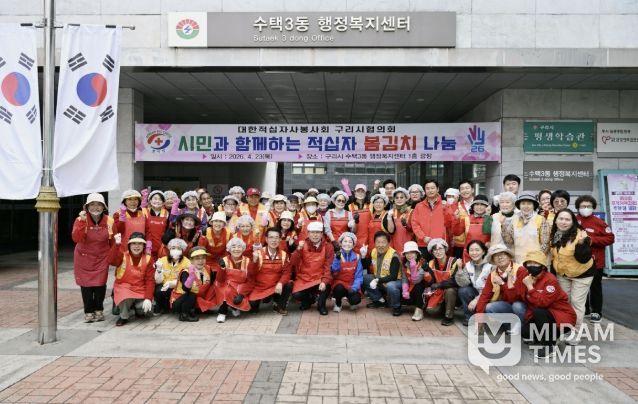 미담타임스 정주환 기자 | 대한적십자사봉사회 구리시협의회는 지난 23일 수택3동 행정복지센터 1층 광장에서 '2026년 시민과 함께하는 적십자 봄김치 나눔’행사를 실시했다고 밝혔다.