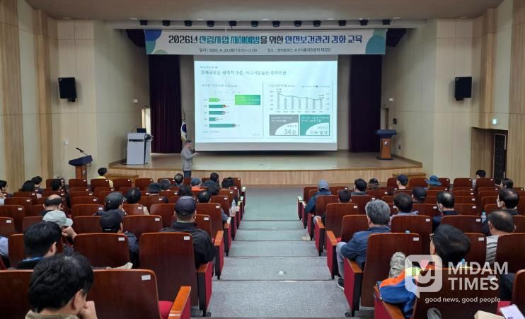 미담타임스 김준완 기자 | 영덕군은 산림 현장의 안전사고를 예방하고 근로자의 보건 안전을 강화하기 위해 지난 23일 영덕 로하스 수산식품지원센터에서 ‘산림사업 재해예방 안전보건 관리 강화교육’을 시행했다.