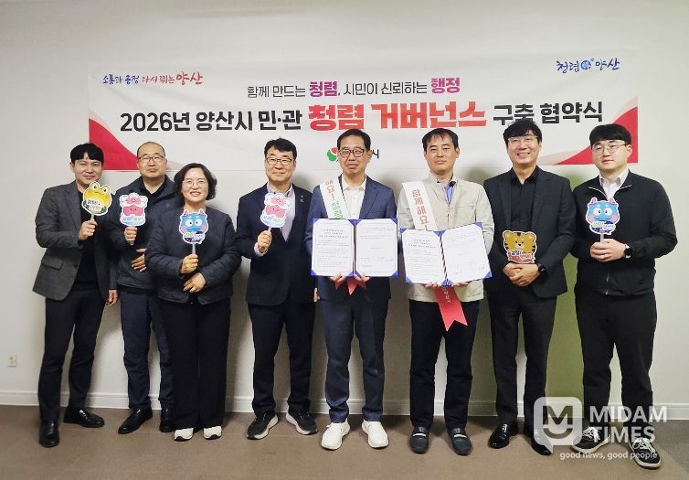 미담타임스 황명수 기자 | 양산시 미래혁신국(국장 장병조)은 투명하고 공정한 행정 실현을 위해 관내 주요 유관기관과 ‘민·관 청렴 거버넌스 협약’을 체결했다고 밝혔다.