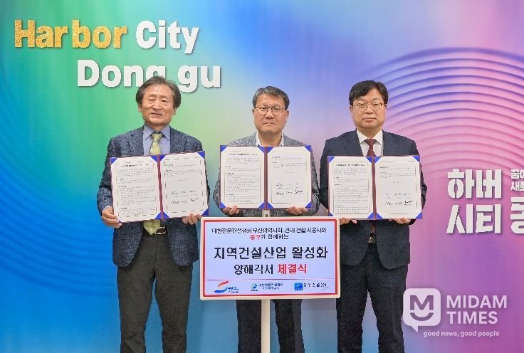 미담타임스 남혜영 기자 | 부산 동구는 4월 23일 대한전문건설협회 부산광역시회 및 동구 관내 건축공사장 시공사인 성무건설 주식회사와 '지역 건설업체 활성화 및 상생 발전을 위한 업무협약(MOU)'을 체결했다.