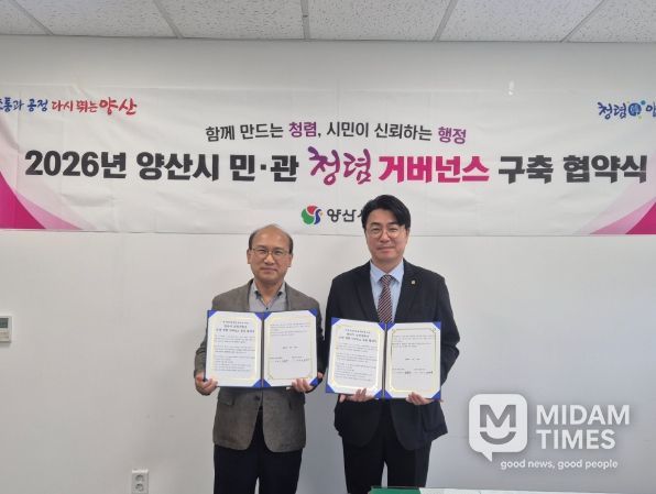 미담타임스 황명수 기자 | 양산시는 건축행정의 신뢰를 높이고 투명한 건축 문화를 정착시키기 위해 양산시건축사회와 ‘민·관 청렴 거버넌스 구축을 위한 업무협약’을 체결했다고 밝혔다.