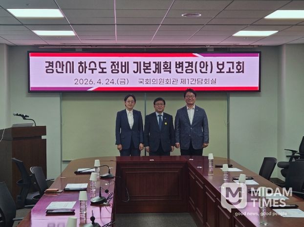 미담타임스 김준완 기자 | 경산시는 24일 국회의원회관 제1간담회의실에서 조지연 국회의원, 김성환 기후에너지환경부 장관 등이 참석한 가운데‘경산시 하수도 정비 기본계획(변경) 수립 용역’ 보고회를 개최했다.