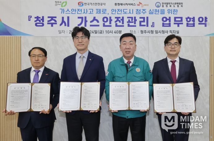 이범석 시장은 “이번 협약은 시민의 생명과 직결된 가스안전을 선제적으로 강화하기 위한 것”이라며 “법적 관리 대상 외 시설까지 포함한 촘촘한 협력체계를 통해 가스사고 사각지대를 해소하고, 시민이 안심할 수 있는 안전한 도시를 만들어 가겠다”고 말했다.