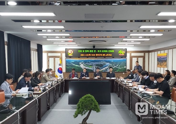 미담타임스 황명수 기자 | 합천군은 23일 건축 및 개발행위 인·허가 업무의 효율성 및 청렴도 향상 방안을 모색하기 위하여 지역 건축사와 토목설계 용역사와의 간담회를 개최했다.