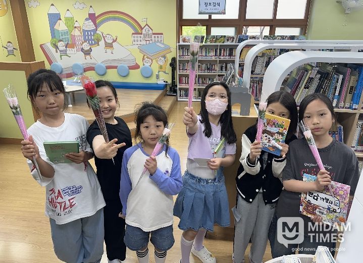 북구 매곡초등학교(교장 이재성)는 도서 대출 시 장미꽃을 선물하는 ‘책과 함께 장미를’ 행사를 열었다.