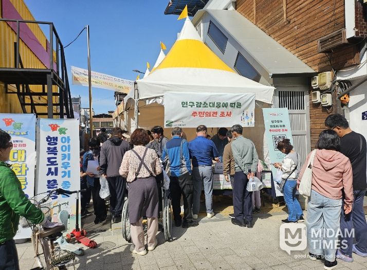 현장에서는 온라인(QR코드·태블릿)과 오프라인(설문지 작성) 방식을 병행한 설문조사를 실시했다. 설문은 시민용과 타지역 거주민용으로 구분해 각 집단의 특성과 정책 수요를 반영한 맞춤형 의견수렴이 이루어지도록 했으며, 참여자에게는 소정의 기념품을 제공해 자발적인 참여를 유도했다. 결혼·출산 지원, 청년 일자리, 생활 인프라 확충 등 주요 인구정책 전반에 대한 시민들의 관심도 높게 나타났다.