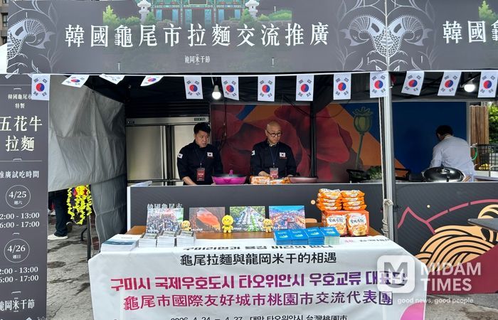 미담타임스 김준완 기자 | 구미시가 대만 타오위안시 대표 미식축제에 참여해 K-라면을 앞세운 도시 브랜드를 알리고, 양 도시 간 교류 협력의 폭을 넓혔다.