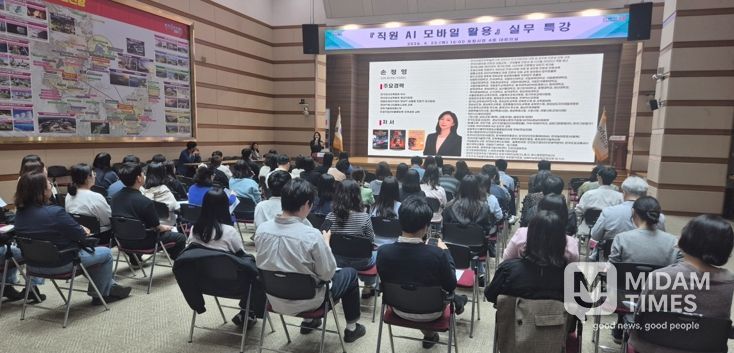 미담타임스 김준완 기자 | 포항시는 지난 23일 시청 대회의실에서 공무원 100여 명을 대상으로 ‘모바일 AI 활용 실무 특강’을 실시했다. 이번 교육은 AI 시대에 필요한 직원들의 디지털 활용 역량을 높이고, 생성형 AI를 행정업무에 효과적으로 접목하기 위해 마련됐다.