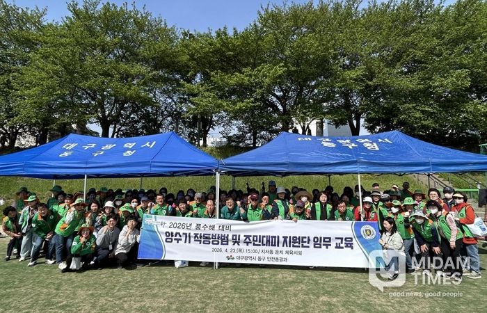 미담타임스 전해찬 기자 | 대구 동구청은 지난 23일, 지저동 둔치 체육시설에서 동구 지역자율방재단 단원 및 관내 22개 동 행정복지센터 재난안전담당자 120여명이 참여한 가운데 양수기 작동법 및 주민대피지원단 임무 교육을 실시했다.