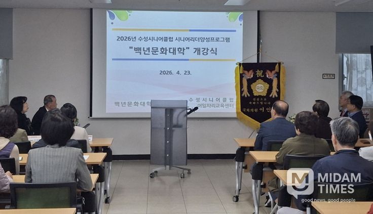 미담타임스 전해찬 기자 | 대구 수성시니어클럽이 운영하는 ‘백년문화대학’ 개강식이 지난 23일 백년문화대학 회원 등 80여 명이 참석한 가운데 수성시니어일자리교육센터에서 개최됐다.