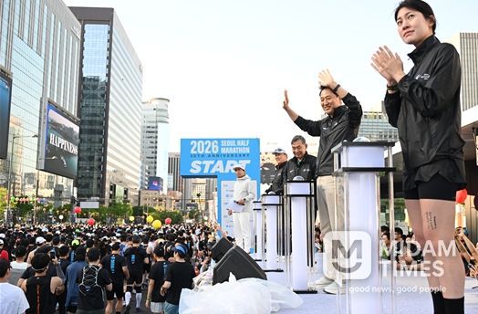 미담타임스 정주환 기자 | 오세훈 서울시장은 26일 오전 광화문광장에서 열린 ‘2026 서울하프마라톤대회' 출발식에서 참가자들을 응원하고 안전한 완주를 당부했다.