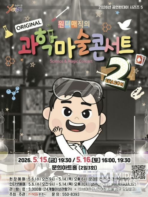 미담타임스 김준완 기자 | 문경문화예술회관에서는 5월 어린이 달을 맞아 마술과 과학의 경계를 넘나들며 온가족 모두가 재미있게 관람할 수 있는 과학마술콘서트 시즌2 공연을 5월 15일 19:30, 16 16:00, 19:30 (2일 3회)에 문희아트홀에서 개최한다.
