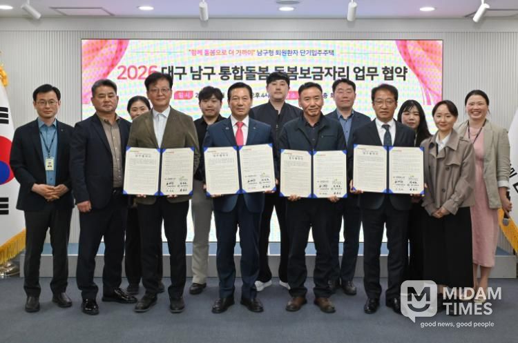 미담타임스 전해찬 기자 | 대구 남구는 지난 24일 지역사회 통합돌봄 활성화를 위한 『돌봄보금자리』 운영을 위해 LH대구북부권주거복지지사와 남구종합사회복지관 및 대명사회복지관과 업무협약을 체결했다고 밝혔다.
