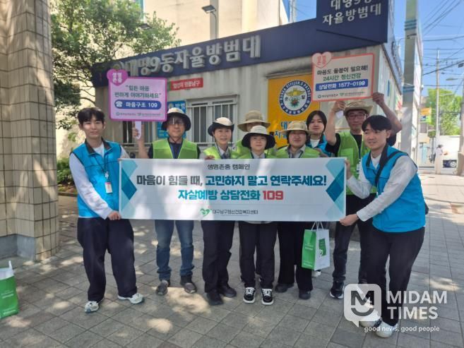 캠페인에 참여한 대명9동 자율방범대원 생명지킴이들은 2023년부터 자살 빈발지역 모니터링 및 순찰 강화, 자살 고위험군 대상자 발굴 및 정신건강복지센터 신속 연계 등 다양한 역할을 수행하고 있으며 앞으로도 지역주민의 안전을 지키는 생명지킴이 역할을 이어나갈 예정이다.