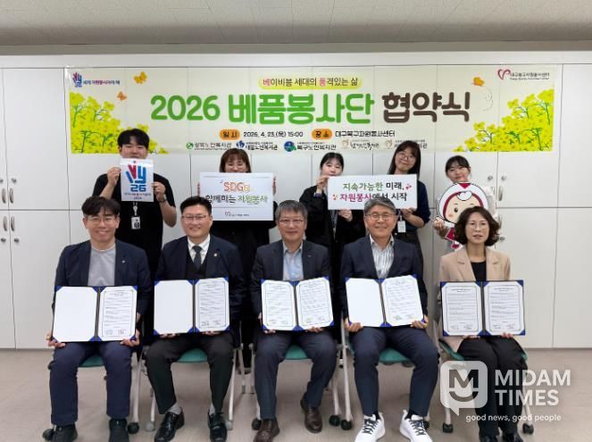 미담타임스 전해찬 기자 | 대구북구자원봉사센터는 지난 4월 23일, 관내 5개 노인복지관과 협력하여 은퇴 세대의 주도적 사회공헌 활성화를 위한 ‘베이비붐 세대의 품격있는 삶, 베품봉사단’ 공동 업무협약식을 진행했다.