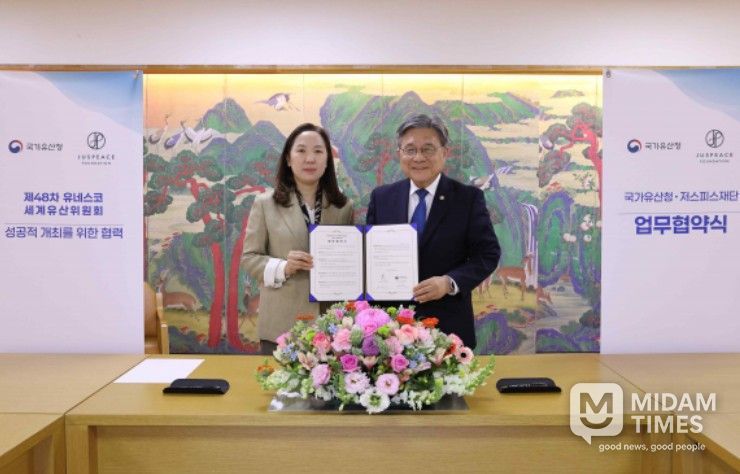 미담타임스 조혜리 기자 | 국가유산청은 저스피스재단과 4월 24일 오후 2시 국립고궁박물관(서울 종로구)에서 제48차 유네스코 세계유산위원회 회의(48th Session of the World Heritage Committee)의 성공적 개최를 위한 업무협약을 체결했다.