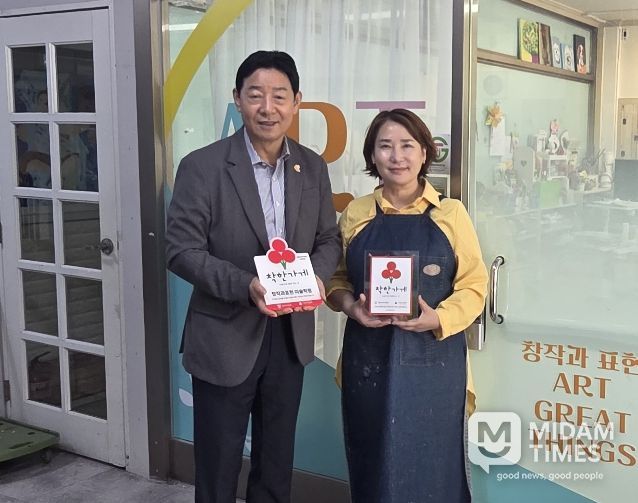 미담타임스 황명수 기자 | (재)김해시복지재단 서부장애인종합복지관은 지난 4월 24일 창작과표현미술학원(대표 천현심)에 방문하여 '착한가게' 268호점 현판 전달식을 가졌다.