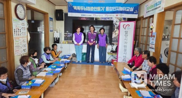 미담타임스 황명수 기자 | 밀양여성리더봉사회는 27일 가곡분회경로당과 가곡4통경로당을 찾아 어르신 대상 통합인지놀이교실 ‘똑똑 두뇌 청춘 만들기’ 프로그램을 운영했다.