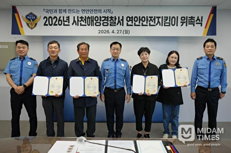 미담타임스 황명수 기자 | 사천해양경찰서는 27일 연안사고 예방을 위해 선발된 ‘26년도 연안안전지킴이” 4명을 위촉했다고 밝혔다.