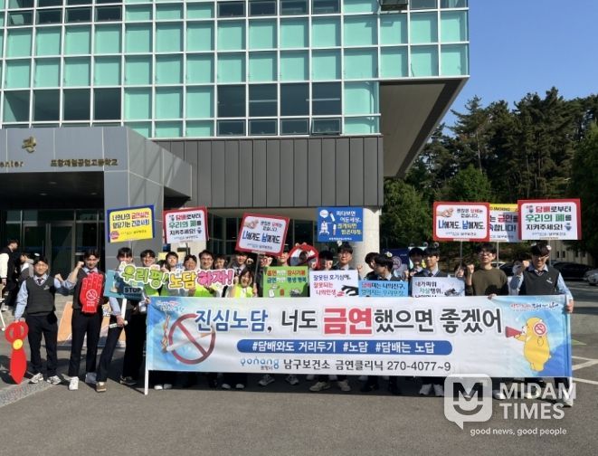 미담타임스 김준완 기자 | 포항시 남구보건소는 27일 포항제철공업고등학교에서 청소년의 흡연 예방과 건강한 생활습관 형성을 위해 학교 연계로 금연 체험 홍보관을 운영하고 캠페인을 진행했다.