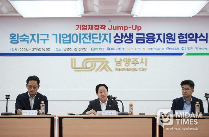 미담타임스 정주환 기자 | 남양주시는 27일 왕숙신도시 개발로 이전이 필요한 기업의 안정적 재정착을 지원하기 위해 ‘왕숙신도시 기업재정착 점프업(Jump-up) 상생금융’ 업무협약을 체결했다고 밝혔다.
