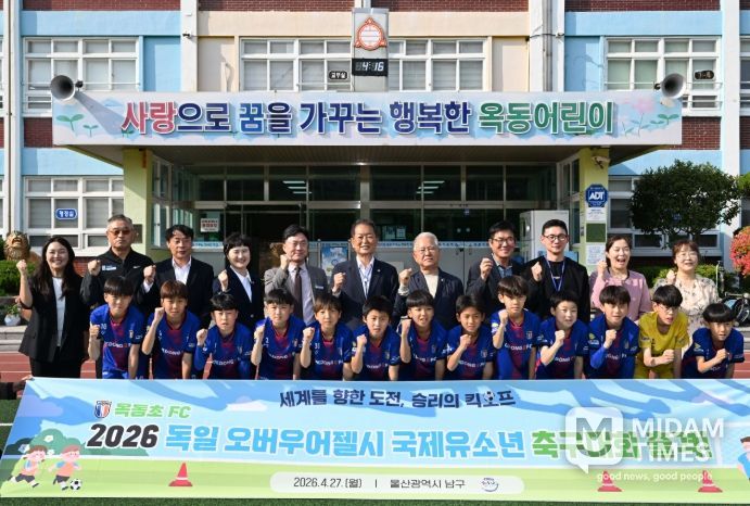 미담타임스 김준완 기자 | 울산 남구는 다음달 독일 오버우어젤시에서 열리는 ‘2026 국제유소년 축구대회’ 참가를 앞두고 있는 옥동초 FC 선수단을 찾아 격려의 시간을 가졌다.