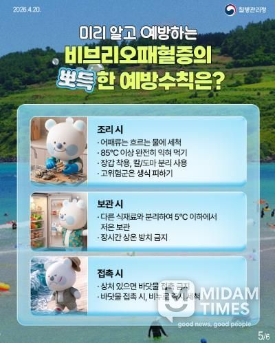 울주군보건소 관계자는 “기온 상승으로 비브리오균 증식 위험이 높아지는 시기인 만큼 어패류 섭취와 조리 위생수칙을 철저히 지켜달라”고 말했다.