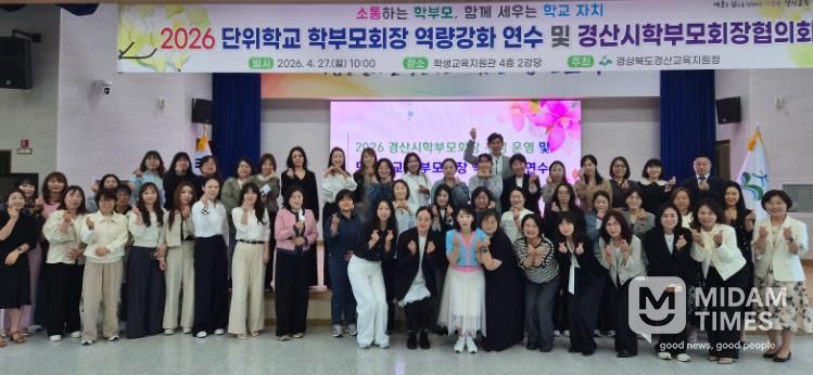 미담타임스 김준완 기자 | 경산교육지원청은 학부모의 교육활동 참여를 지원하고 학부모회의 자치활동 활성화를 돕기 위해 2026년 4월 27일 경산교육지원청 학생교육지원관 4층 2강당에서 ‘2026년 경산시학부모회장협의회 구성 및 단위학교 학부모회장 역량강화 연수’를 개최했다.