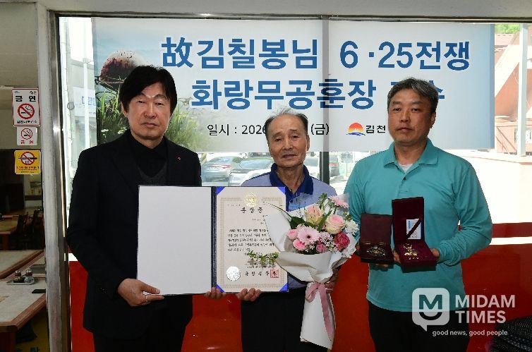 미담타임스 김준완 기자 | 김천시는 2026년 4월 27일, 故김칠봉님의 유족에게 화랑무공훈장을 전수하는 뜻깊은 행사를 개최했다.
