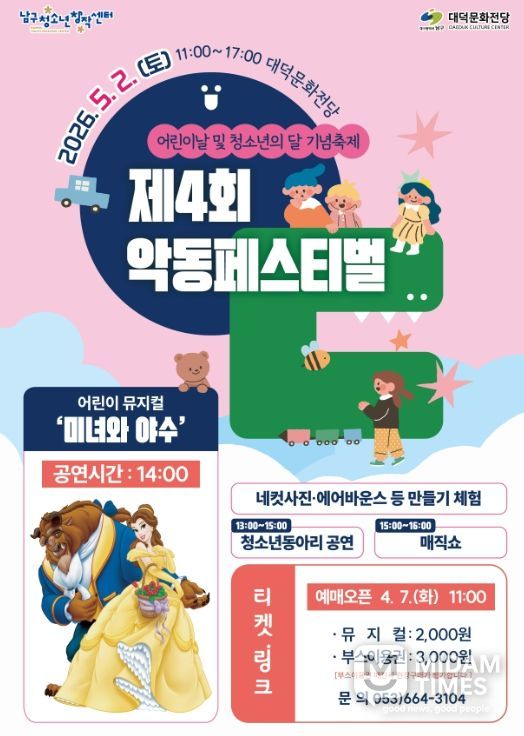 미담타임스 전해찬 기자 | 대구 남구청소년창작센터는 5월 어린이날 및 청소년의 달을 맞아 오는 5월 2일 토요일 대덕문화전당에서 '제4회 악동페스티벌'을 개최한다고 밝혔다.