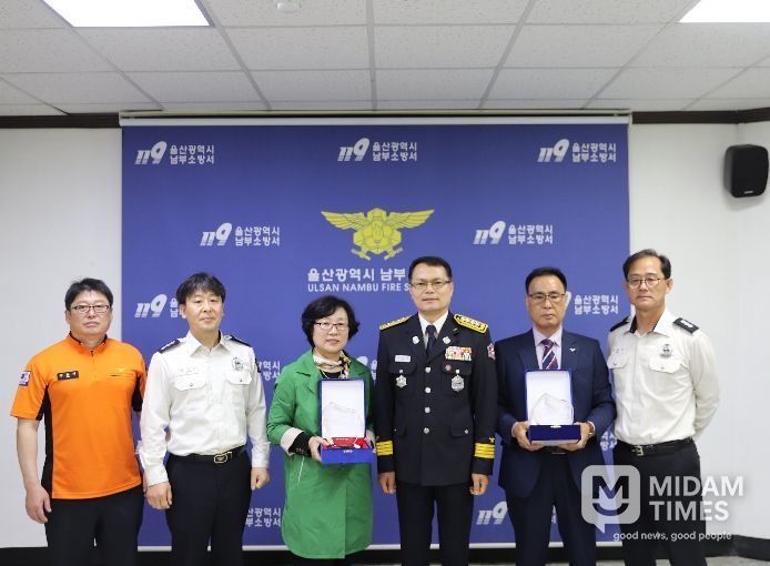 미담타임스 김준완 기자 | 울산 남부소방서는 4월 28일 오전 10시 남부소방서 3층 소회의실에서 화재 현장에서 초기 진압과 인명 대피에 기여한 용감한 시민 2명에게 감사의 뜻을 전하고자 감사패를 수여한다고 밝혔다.