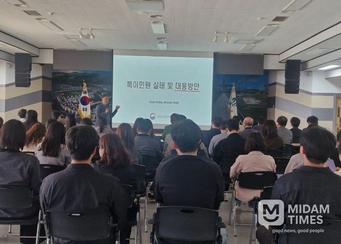 이번 교육은 특이민원 유형별 대응 전략, 사례 기반의 실무 대응 요령 등을 중심으로 국민권익위원회 소속 특이민원 시민상담관 박재병 강사가 참여해 실제 상담 사례를 중심으로 한 실전형 교육이 진행 됐다.