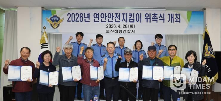 미담타임스 김준완 기자 | 울진해양경찰서는 4. 28. 관내 연안사고 예방과 안전관리 강화를 위해 ‘2026년 연안안전지킴이 위촉식’을 개최했다고 밝혔다.
