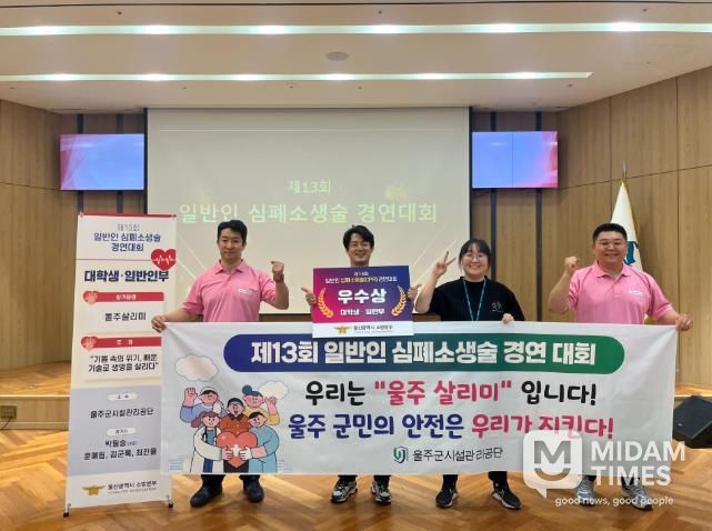 미담타임스 김준완 기자 | 울주군시설관리공단은 4월 27일, 울산소방본부가 주최한 제13회 일반인 심폐소생술 경연대회에서 청소년부 ‘최우수상’과 대학·일반부 ‘우수상’을 동시에 수상하며 지역사회 안전문화 확산에 앞장서는 기관으로서의 위상을 다시 한번 입증했다.