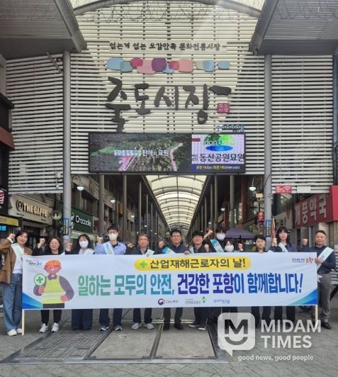 미담타임스 김준완 기자 | 포항시는 28일 ‘산업재해근로자의 날’을 맞아 죽도시장 일원에서 유관기관과 함께 시민과 근로자를 대상으로 산업재해 예방 및 안전문화 확산을 위한 합동 캠페인을 실시했다.