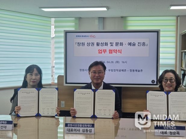 미담타임스 황명수 기자 | 창원시상권활성화재단은 4월 28일 오후 4시, 재단 어울림센터(3층)에서 부림창작공예촌·창동예술촌과 함께 '상권 활성화 및 문화·예술 진흥'을 위한 업무협약을 체결했다.