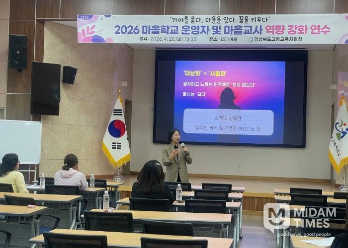 미담타임스 김준완 기자 | 경상북도고령교육지원청은 4월 28일 오후 1시 30분, 고령교육지원청 대가야홀(3F)에서 관내 마을학교 운영자 및 마을교사를 대상으로 ‘2026 고령미래교육지구 마을학교 운영자 및 마을교사 역량강화 연수’를 개최했다.