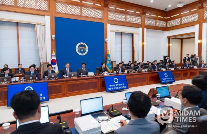 아울러 "화물차 노동자와 농민 등 고유가 충격이 큰 국민 계층에 대한 제도적 사각지대가 없는지 잘 살펴야 한다"며 "인공지능 대전환과 재생 원료 중심의 순환 경제 실현 등 우리 경제의 구조 혁신 또한 속도를 내 달라"고 당부했다.