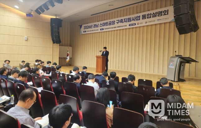 미담타임스 황명수 기자 | 경상남도는 28일 경남테크노파크 경남창원과학기술진흥원에서 ‘2026년 경남 스마트공장 구축 지원사업 통합 설명회’를 개최하고, 제조 인공지능(AI) 기반 스마트공장 보급·확산에 속도를 낸다고 밝혔다.