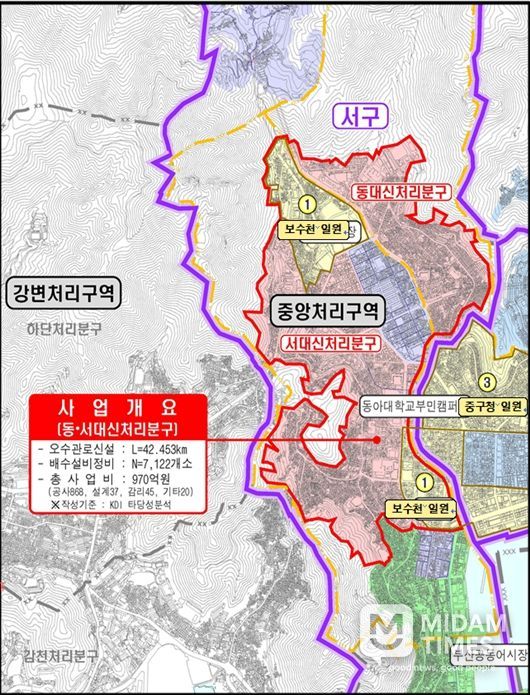 미담타임스 남혜영 기자 | 부산시는 '동대신·서대신 처리분구 하수관로 정비사업'을 민간투자 방식으로 추진하기 위한 타당성분석에서 적격 판정을 받아 사업 추진 기반을 마련했다고 밝혔다.