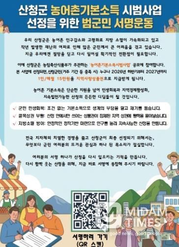 미담타임스 황명수 기자 | 산청군은 ‘농어촌기본소득 시범사업 선정 기원 범군민 서명운동’에 돌입했다고 29일 밝혔다.