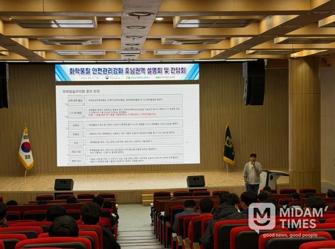 미담타임스 김준완 기자 | 전남녹색환경지원센터(센터장 김은식 전남대 교수)는 지난 4월 17일, 전남대학교(여수) 산학연구관 국제회의실에서 ‘화학물질 안전관리 강화 호남권역 설명회 및 간담회’를 개최했다.