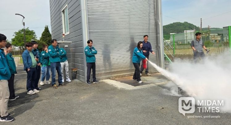 이번 훈련은 정기적으로 시행하는 안전관리 활동의 일환으로, 전 직원을 대상으로 실시됐다. 이날 시청각 교육을 통해 화재 발생 시 대피요령을 안내하고, 초기 화재 대응을 위한 소화기 사용법 교육도 병행했다.