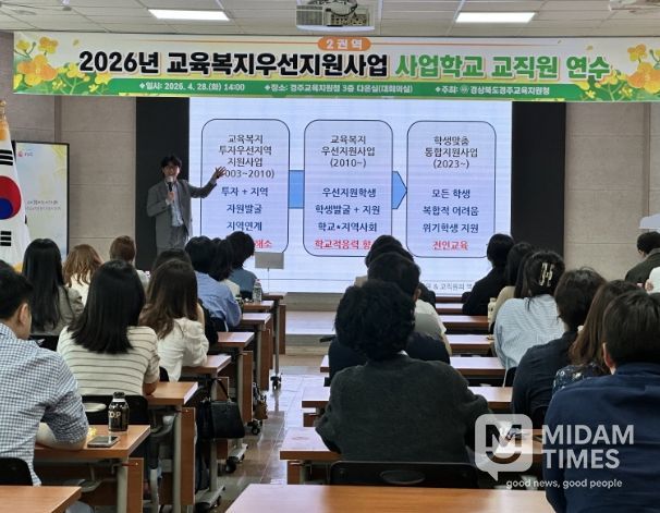 미담타임스 김준완 기자 | 경상북도경주교육지원청은 2026년 4월 28일 경주교육지원청 다온실(3층 대회의실)에서 ‘2026년 교육복지우선지원사업 2권역 사업학교 교직원 연수’를 개최했다.