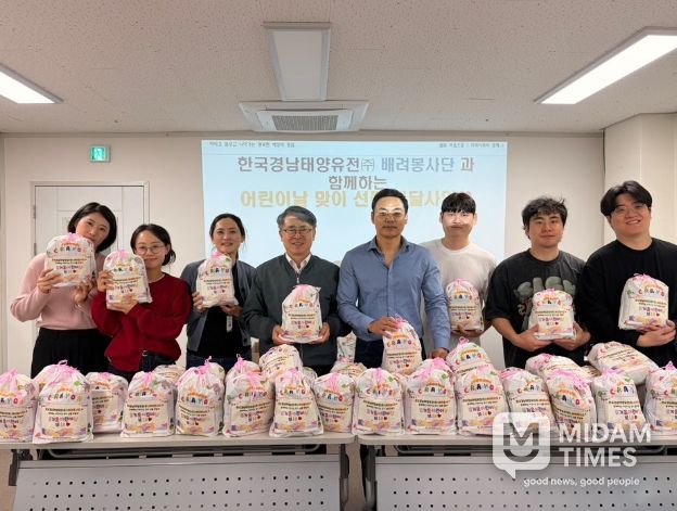 이번 행사는 한국경남태양유전(주) 배려봉사단의 후원으로 마련됐으며, 지난 4월 27일부터 복지관에서 과자 선물꾸러미 전달이 이뤄졌다.
