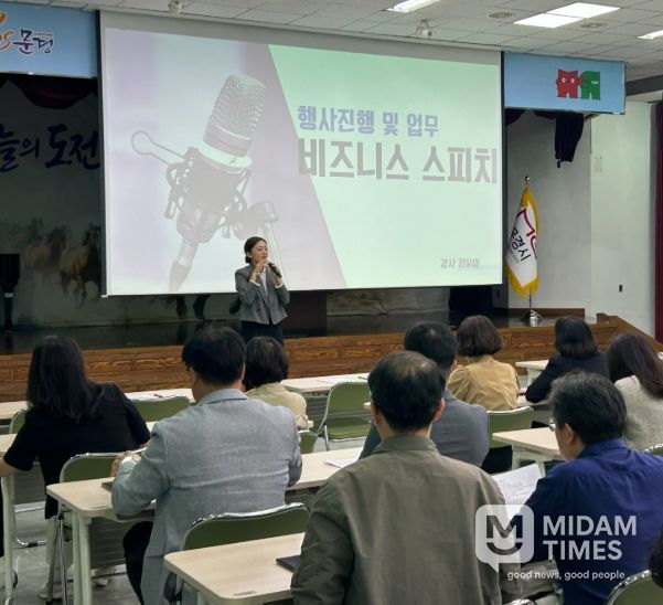 미담타임스 김준완 기자 | 문경시는 4월 28일 팀장급 공무원의 스피치 능력과 회의 진행 능력 향상을 위해 전문 강사를 초청하여 직무역량 강화 교육을 시행했다.